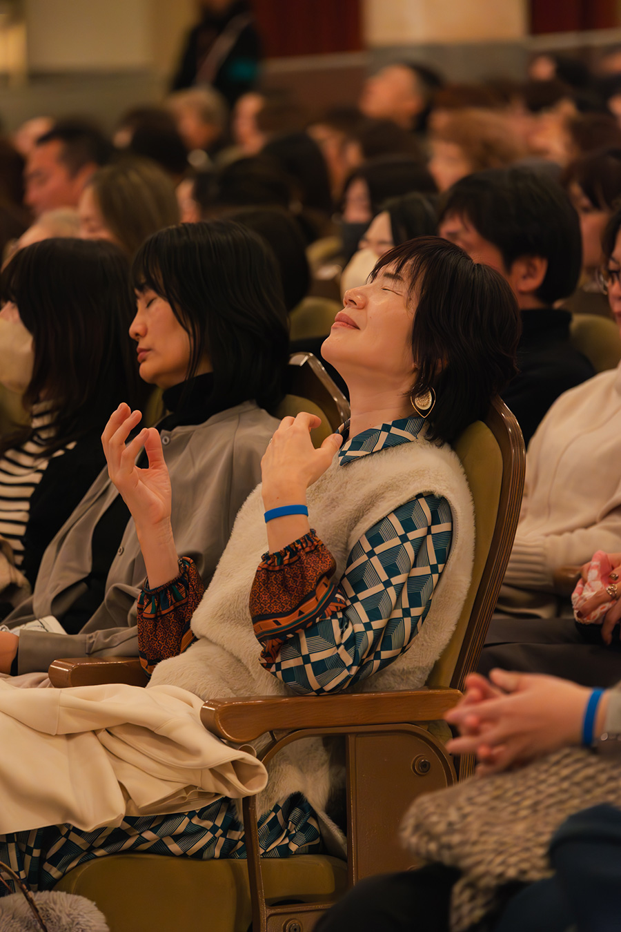 椅子に座って話を聞いているだけなのに、MOMOYOの超能力によって身体の調整が行われ、会場にいるだけで、スーッと力が抜け、身体が軽くなります。